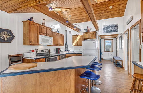 This cozy 3 bedroom cottage was fully renovated in 2010 and also features a large bunkroom for the kids! Kitchen features vaulted ceiling with skylights and large island to gather around. Living room and 400 sq ft deck overlook the lake to the west for spectacular sunsets!