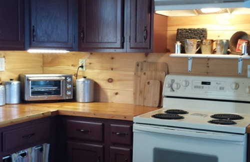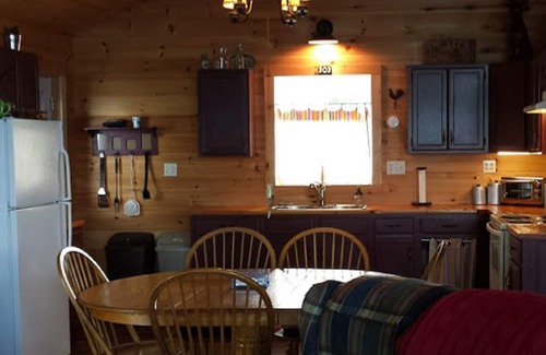 Cottage has over 1300 sq feet of space with lofted ceilings throughout with knotty pine interiors. Full size kitchen, open to common seating area with views of the lake. One bath with shower, washer and dryer. Bedrooms can sleep 6. One king size bedroom with closets and glass sliding door for lake views. The bunk room has four queen size bunk beds with dressers. Air conditioning is available in all of the rooms. Flat screen TV in common room, cable TV, high speed internet access, WIFI.