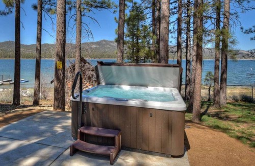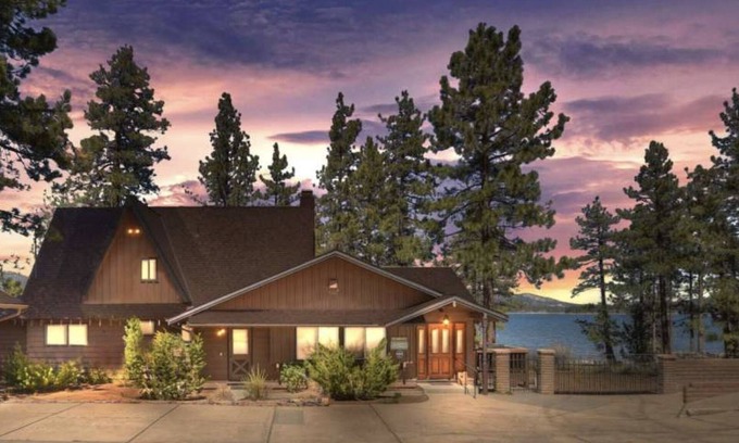 This Classic Lake House is one of the original lakefront homes in Big Bear Lake. On a double-wide lot, This Classic Lake House brings you back to a time when life was simpler, relaxing, fun-filled, and stress-free. Travel to this mountain lake home and you will discover what life is all about. Beautiful... fun... fresh mountain air... laughs... good times! 20 feet of deep shoreline, incredible panoramic views of the lake that will include front row seats of the July 4th fireworks. No better way to enjoy the nation's Independence Day than on a dock, on a lake, watching Southern California's best fireworks display. Partially updated in 2020 with new decor and mountain modern furniture, this property is cozy and comfortable. Four bedrooms, including one bunk room for 4-6 kids, will have the entire family dreaming of the day fishing, skiing, exploring, and hanging out on the new deck. The expansive, tree-covered backyard includes a brand new hot tub, swing set, horseshoe pit, and deep water dock for all your water toys.
