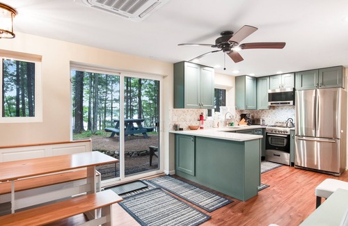 - All-seasons lakefront cabin with dock, wood fireplace, kitchen, kayaks, & AC