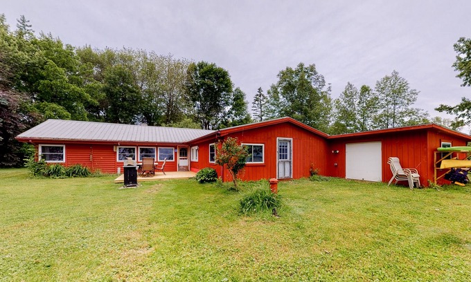 Prepare to relax in a classic lakefront home with a modern twist. All one floor, this cabin-inspired home was remodeled in 2022 and is ready to welcome your entire group for a lakefront getaway. The home's location on the lake puts it in a perfect location for kayakers and paddleboarders looking to get out on the water - there's even a kayak and paddle board available at the home, so you can save room while packing. After a day of exploring, you can curl up in front of the electric fireplace and enjoy chats under the high ceiling beams. The open kitchen is fully equipped with everything guests need to put together meals for the whole group. But of course, cooking out on the gas grill is always an option. Looking for a place to work? One bedroom features a desk workspace with a lake view, perfect for working through assignments or projects. When everything's done, you can head outside and light up the firepit for a fun end to the day. Guests will be just under three miles from the trails at Missiquoi National Wildlife Refuge and within 48 miles of Beartown Ski Area, Smugglers' Notch Resort, and Jay Peak Resort. Sugarbush Resort is just under 90 miles away!