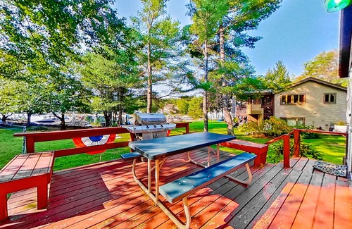 How would you like to walk out your back door and step into the sand of the home's private Lake Winnipesaukee beach? Located on the Northern part of Lake, this vacation rental home is perfect for your family retreat - perfect for everyone of all age groups! Enjoy the sandy waterfront, beautiful views of the lake and mountains, and the boat dock. If the private beach isn't enough, this home also offers use of the large Balmoral Community Beach, boat launch, playground, and tennis and basketball courts. Spend your days on the water paddling around in the canoe, paddleboat, or two kayaks that the owner provides for your stay. The home's living area is equipped with a smart TV with streaming capabilities and an electric fireplace to keep you nice and warm during cold days. Treat your loved ones to delicious grilled meals using the propane grill available on the deck, where you can also find an outdoor dining area for alfresco dining.