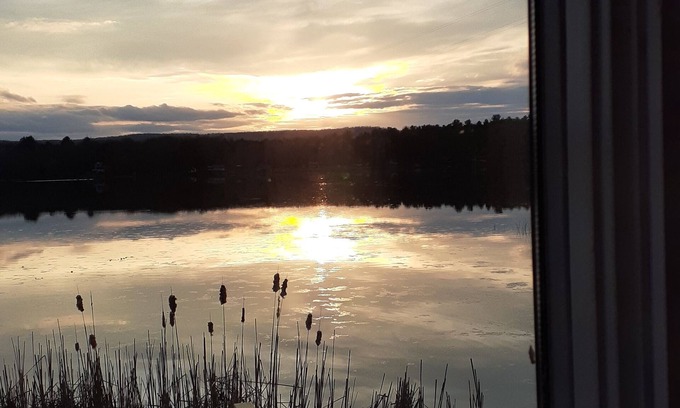 In the spacious living room, there's a big, beautiful window overlooking Indian Lake with a sunset view. We have a comfy couch and 2 club chairs with ottomans to relax and watch the birds flying by. There is a large, stone coffee table perfect for doing jigsaw puzzles or playing board games (we have an assortment available). The 54" TV has Netflix, HBO, AMC, Peacock, Disney and Amazon Prime with excellent wifi connectivity and a portable Bluetooth speaker to listen to tunes. The room is decorated with a cottagey mix of original watercolors by a nationally renowned artist and local thrift store treasures. At night, you can have the convenience and ambiance of our electric fireplace with thermostat and LED lights. Use the Barska Professional Spotting Scope or the binoculars to see clear across the lake.
