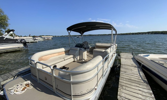 The water is very clear, and great for swimming. My shoreline offers a nice shallow hard sand bottom, great swimming for kids of all ages. Easy access in and out of the water. I have a large dock for your boat(s) jet ski(s) or you can rent my pontoon boat. I also offer 2 kayaks for complimentary use. The kids will love my large floating Matt in the lake.