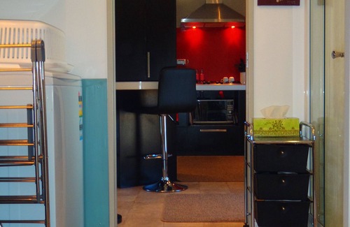 Studio room = x1 Double bed in loft access by ladder & sofa bed + toilet