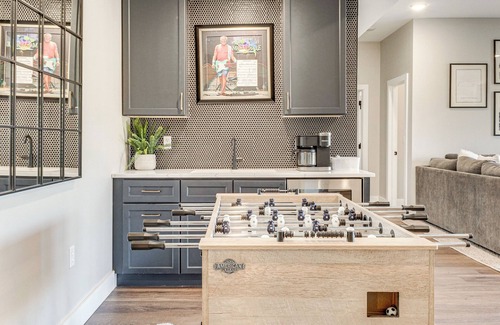 - Wet bar w/ dual coffee maker (drip/pod) & mini fridge