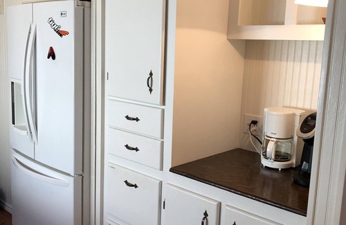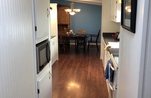 Fully furnished main house with one queen master, one queen bedroom, a day bed with trundle (2 twins) bedroom, and two full bathrooms. Master bath has standing shower and second bath has a tub and shower. Includes full kitchen with full size fridge, dishwasher, stove, oven, and microwave. A couch, two chairs, and recliner chair as well as a TV is available in the living room. Washer and dryer off the kitchen are also available for use. Three level porch attached to main house with ample seating, picnic table, grill and Blackstone. (Please make sure grill is not up against house/siding. The heat will melt the siding and has the potential to start a fire.)
