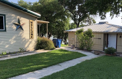 Beautiful 3 bed, 2 bath house and separated 1 bed, 1 bath cabin located in Cason Cove with three level porch and dock overlooking Lake Brownwood. Cason Cove is a no wake zone, so no need to worry about boats speeding by. When the lake is full, the water is approximately 14 feet deep off the dock.