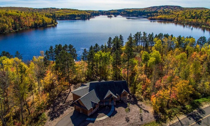 Offering a spa and wellness center, Lakefront Giants Ridge Retreat Near Ski and Golf! offers accommodations in Biwabik. This vacation home features air-conditioned accommodations with free Wifi. Featuring a patio and sea views, the spacious vacation home includes 4 bedrooms, 2 living rooms, cable flat-screen TV, an equipped kitchen, and 5 bathrooms with a bath and a shower. Towels and bed linen are available in the vacation home. The property has an outdoor dining area. There is an on-site bar. Chisholm-Hibbing Airport is 39 miles from the property.