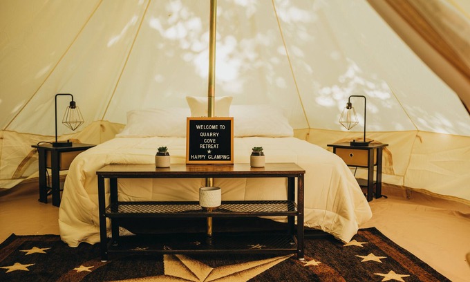 This glampsite features one QUEEN bed with room for a small air mattress if needed.
