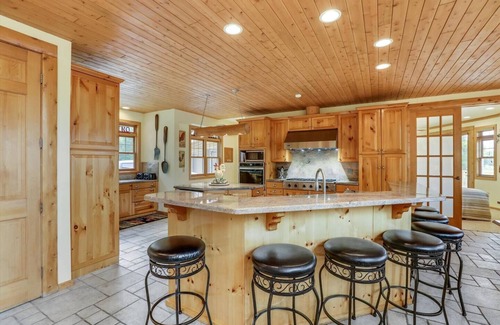 A microwave, convection oven, regular oven with warming drawer, dishwasher and beverage refrigerator, two 12 cup coffee pots and two 4-slot toasters add to the list of the appliances .An over sized granite counter that seats s8 along with the large granite island completes this amazing space. Formal dining space is located next to the open kitchen area seating 10. Washer and dryer are located on main level. The Lodge has central air conditioning and all bedrooms, which are lake front, walk out to either balconies or to the main deck of the Lodge.