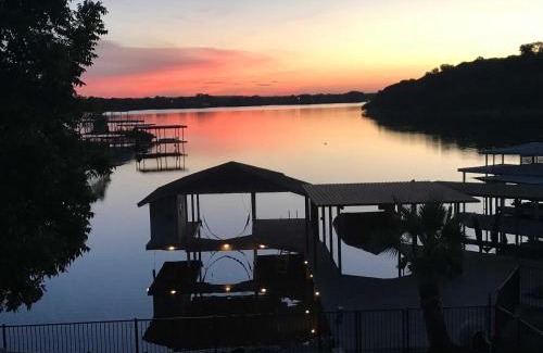20 miles from Dinosaur Valley State Park in Granbury, Lakefront Granbury Home with Dock, Decks and Hot Tub! offers accommodations with access to a hot tub and spa center. This vacation home features air-conditioned accommodations with a patio and free Wifi. Featuring a balcony and lake views, the spacious vacation home includes 3 bedrooms, 2 living rooms, cable flat-screen TV, an equipped kitchen, and 3 bathrooms with a hot tub. Towels and bed linen are offered in the vacation home. The property has an outdoor dining area. There is an on-site bar.