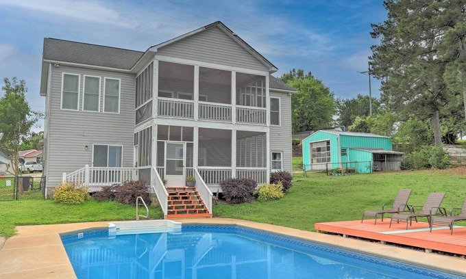 With 105 feet of shoreline steps away and a pool at your fingertips, you may never want to leave this South Carolina vacation rental! This 5-bedroom, 2-bathroom Lake Greenwood home is ideal for water lovers, with a boat launch and dock access on-site! This ‘Copper Tone’ property makes it easy for you to fuel up, visit the marina, or grab lunch at Harris Landing. Those who prefer to stay on land can relax on a screened porch or poolside in the loungers. This home is an oasis for all!