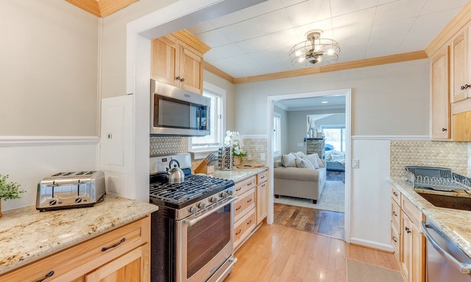 KITCHEN: Drip coffee maker, dishwasher, toaster, cooking basics, stove/oven, microwave, refrigerator