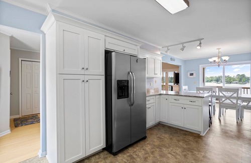 Fully equipped kitchen that makes you feel like home. You can access the deck and barbecue delicious meals while enjoying the lake view.