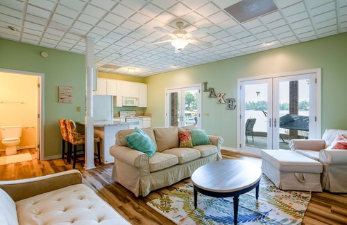 Your tranquil 7 bedroom 4.5 bathroom lakeside escape awaits you at Lake Badin. One of the bedrooms has a transparent door. The house has an in law suite attached.