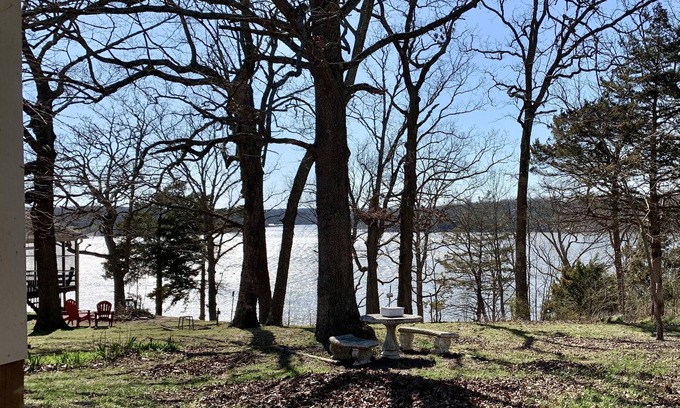 Newly remodeled Lakefront home/awesome views of the lake. Spacious living area to accommodate families. 2b/2b w/Master suite King bed, Queen bed in guest bedroom, and futon bunk bed in family room. Large covered porch/relax with coffee in the morning or watch sunset over the lake. Watch wildlife in the backyard as boats go by. Free Wifi, DVDs, games. Boat ramp less than 1/4 mile down the road...