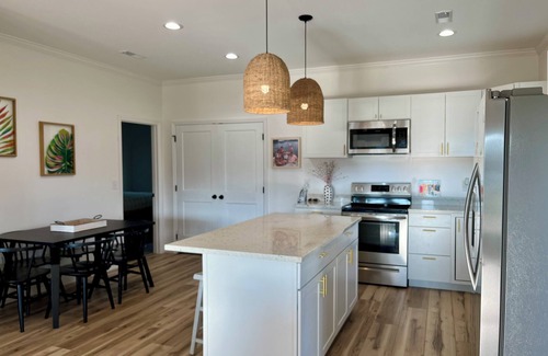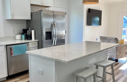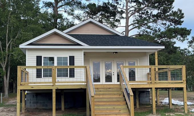 Lakefront home built in 2022 on Lake Marion of the Santee Cooper Lakes. The home is located in Wyboo Creek which is the most popular place on the lake to vacation/ waterski/ tube/ etc. It is 3 Bedrooms and 2 Full Bathrooms with a whirlpool tub/ rain shower head in Master. Living room has couch and blowup mattress to sleep a few more if necessary. Sleeps 8-10 comfortably. 75" Flat Screen in Living Room, 50" Flat Screens in all 3 Bedrooms. Free Wifi. This home sits up high on the lot and has the most beautiful sunsets on the lake. It has a giant front porch with Charcoal Grill and it has a pier to dock your boat. Boat landing 1.2 miles from the house to launch your boat. Wifi password and entry info will be provided a day or two before check in.