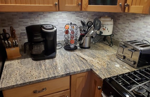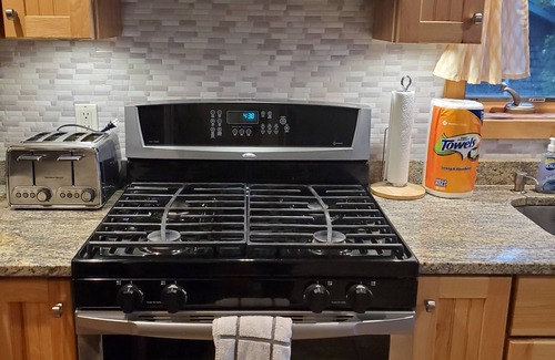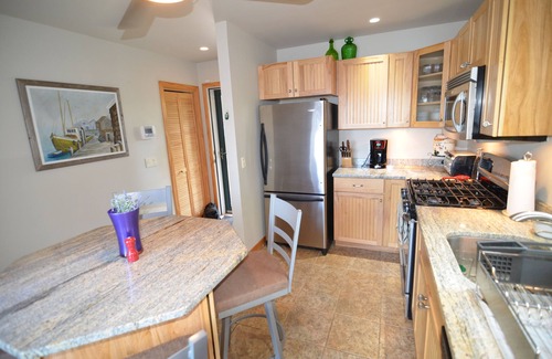The kitchen is spacious for a family of 4. With plenty of storage, whirlpool appliances, coffee maker, dish washer, and views through the sliding door onto the patio, you are sure to fall in love. The patio (off the kitchen) provides seating for 5 with a high table (for 2 or 3) overlooking the pond.