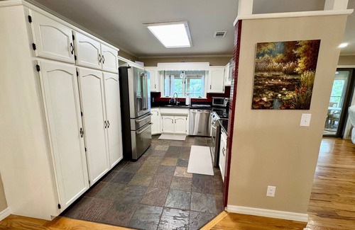 Escape to Turtle Cove Hideaway, a secluded lakefront haven steps away from the pristine waters of Beaver Lake in Arkansas. Wake to stunning water views, enjoy peaceful mornings in the sunroom, and create unforgettable memories with loved ones. Discover two living areas, a well-appointed kitchen plus downstairs kitchenette, comfortable bedrooms, a spacious sunroom, and a bonus game room. Outside, guests enjoy luxuriating in the hot tub, easy lake entry for swimming and fishing, as well as access to kayaks and paddleboards.