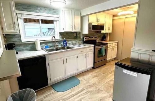- Two bedrooms, one with a queen mattresses & the other with a full/ twin bunk bed