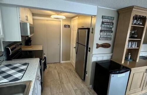 The dinning area is filled with a large table, looking directly out to the beautiful lakefront view. At last, you enter the kitchen where you'll prepare all your wonderful meals!