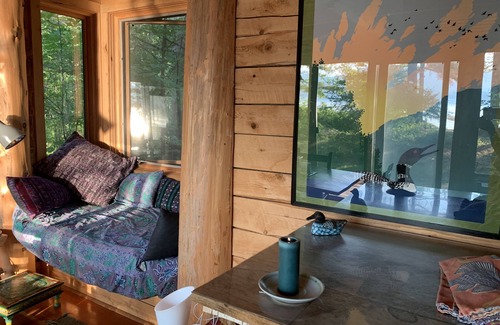 Gorgeous old cabin, modernized with large plate glass windows, skylights and sliding doors. Luminous inside. Sorry no photos of upstairs. Beautiful rooms throughout.