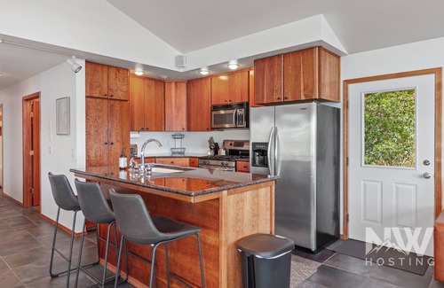 Cousins Cabin: Studio-style, located beneath the main house with outdoor access.