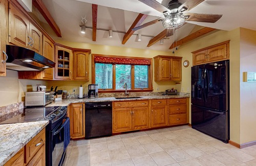 Inside your home away from home, gather under the living room's vaulted ceilings for movie viewings alongside the fire. Steps away, the full kitchen is sure to delight any chef with its updated appliances and granite countertops. When you'd prefer to cook with views, fire up the balcony's gas grill. When mealtime rolls around, gather around the grand formal dining table, situated alongside a grand piano.