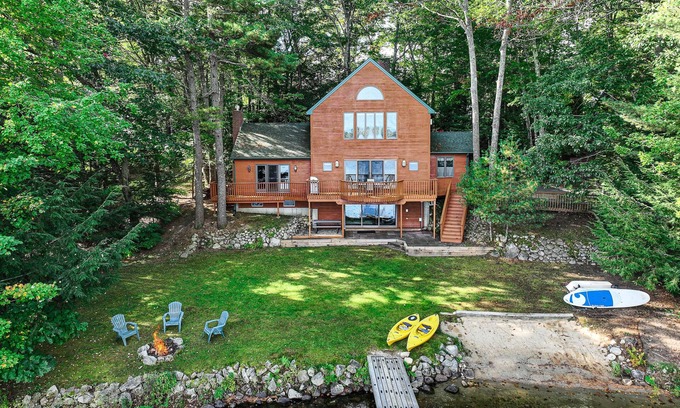 Perched on the gleaming shoreline of Little Sebago Lake, Loon Cove offers an idyllic wilderness retreat any time of year! Providing the perfect mix of sun and shade, a highlight of the home is the property's viewpoint for unforgettable sunrises and sunsets. While enjoying the pleasant weather, glide onto the lake via the provided kayaks, and paddle boards, fire up the gas grill for a family cookout, and roast gooey s'mores over the dancing flames in the firepit.
