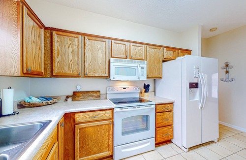 The home itself boasts two upstairs primary suites, each equipped with a full en suite bathroom. In the detached downstairs, two bunk bedrooms and a game room provide plenty of family-friendly fun and comfort. The full kitchen is equipped with all the major appliances and accessories to handle all your home cooking needs. Additional perks include free WiFi, central air-conditioning, and a private washer/dryer.