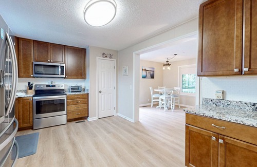 Inside, you’ll find two levels of living space and comfortable, lake-themed decor. The full, well-equipped kitchen will keep everyone fed, and there’s plenty of mealtime seating between two tables. Living spaces both upstairs and down feature streaming-capable TVs, and downstairs you’ll also find a pool table with a Ping-Pong table topper. If you head out to explore, the Blue Ridge Scenic Railway, hiking trails, OHV trails, golf, waterfalls, and state parks surround you. Spend the evening at home playing a board game, uploading the day’s pics to social media with the free WiFi, or just relaxing outside while the stars come out. Lake life awaits - all that’s left to do is book it.