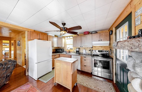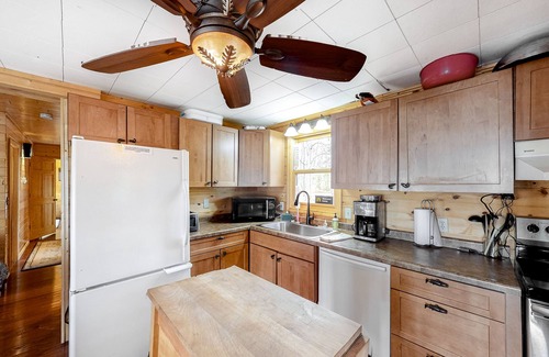 - Riverfront vacation home with a dock, wood stove, full kitchen, & firepit