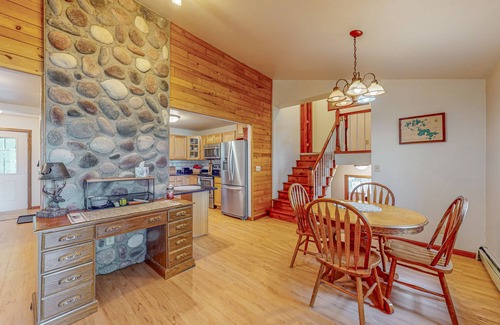 With easy access to activities like boating, fishing, kayaking, and snowmobiling, as well as nearby restaurants and shopping, you'll have plenty to keep you entertained. The heated garage offers warm solace to snowmobilers. Whether you're seeking a relaxing getaway or an adventure-filled vacation, this house is the perfect choice.