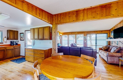 Lakefront living never looked this good! Nestled alongside Flathead Lake, this lovely home boasts a private gravel beach, perfect for wading and swimming, and a large dock to tie up your boat. Directly across the bay, you'll discover a public boat ramp, and just up the road from your stay, you'll find Big Arm Resort which has both a marina and a restaurant. For sailboat rentals, check out Sail In Marina.