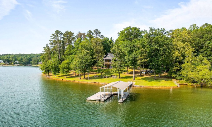 - Spacious Lakefront Estate: 2 Hot Tubs, Dock, Game Room, Sleeps 38, Tennis Court