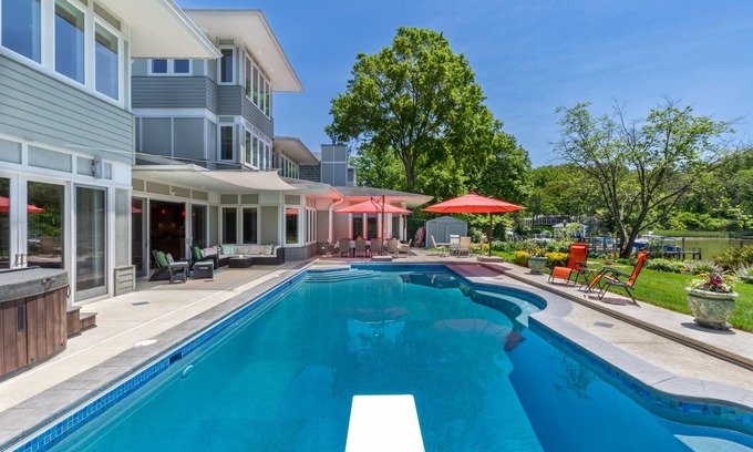 Lakefront home with private pool, hot tub, outdoor space, central AC, & W/D is located in Annapolis. Lakefront home with private pool, hot tub, outdoor space, central AC, & W/D provides accommodation, featuring Fireplace/Heating, Hot Tub, TV, among other amenities. This House features Fireplace/Heating, Hot Tub, TV, to make your stay a comfortable one.