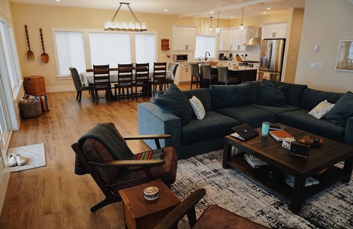 We built this home in 2019 as a vacation place for our family. Our favorite feature, besides being right on a beautiful beach and overlooking the lake, is the large downstairs great room, complete with a fireplace, large dining room table, and modern kitchen. Five bedrooms, three baths, and laundry room make this a great place for families. We also have a large covered porch out front where we spend most of our time when not out swimming, boating, hiking, sunning, or playing games. Additional amenities include kayaks, paddle boards, dock/pier, fire pit, board games, puzzles, Roku TV, and an assortment of DVD's. Coolin is just a short walk away, there are a number of nearby restaurants, lots of spectacular hiking trials, and several places on the lake rent boats/jetskiis. We love our place and think you will too!