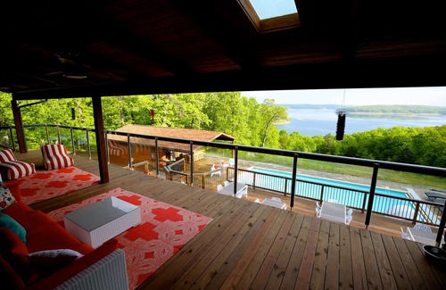 Set up high on the ridge with plunging views of Lake Norfork. Equani Lodge has a lake beach across the road, and a full service marina only 10 minutes away. Rent a boat and go tubing, water-skiing, fishing, take a sunset cruise - or go on a hike right from your luxury lodge.