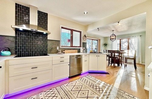 Relax with the whole family at this peaceful lakefront property. Conveniently located nearby shopping district, Grocery store & access to Hwy 100, 26 miles from MSP and MOA. Lake is recreational, 2 kayaks will be provided for use for any reservations. Smart TVs, high-speed WiFi, infrared Sauna and enclosed parking are provided at no charge. The kitchen is equipped with necessary utensils for an extended stay. A ramp for wheelchair accessibility can be provided upon request.