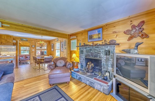 Boasting a lakefront location and all the comforts of home, this Adirondack charmer is the perfect place for your next vacation. Inside, you'll find a comfortable living area, a kitchen where you can prepare homecooked meals, and cozy bedrooms where everyone can rest up for another day of adventure. An enclosed deck space provides beautiful views. Of course, you may like to spend most of your time outdoors, enjoying the 275 feet of private beach, the lake, and all the fishing, boating, swimming, and other activities that come along with being near the water. There's even an area for badminton and horseshoes, plus a firepit.