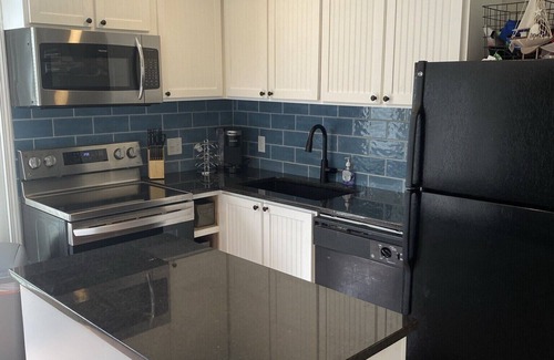 The lower level of the house has two queen size beds. There are two bathrooms with showers and a laundry area with a washer and dryer.