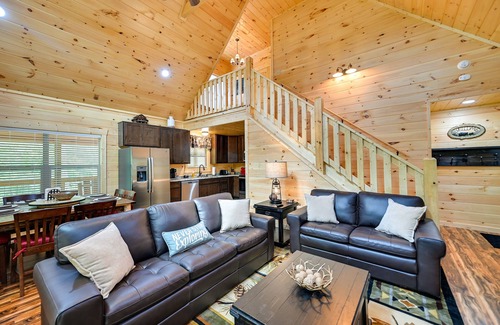 Offering plenty of space to curl up and get cozy, this 4-bedroom, 3-bathroom Cliffview vacation rental cabin offers a great and convenient getaway with family and friends. When you're not admiring the views from the hillside fire pit, get a fire going in the indoor fireplace or get competitive in the game room. For a bit more adventure, take your pick from a zipline tour with Red River Gorge Zipline, a scenic hike through Natural Bridge State Park, or a day packed with thrills at Thrillsville Adventure Park. If you are a rock climber The Pendergrass-Murray Recreation Resort is for you. The property also offers a catch and release fishing lake with floating dock, with a path/steps to the dock from the cabin. Convenient to restaurants, grocery stores, firewood, and plenty of hiking and activities