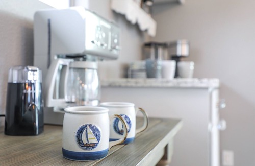 The kitchen has everything you'll need for cooking ~ it is fully stocked with pots, pans, utensils, basic spices and olive oil. There is a BBQ grill on the upper deck. The dining table can seat up to 6 people with two at the kitchen bar and an additional six on the outdoor deck table.