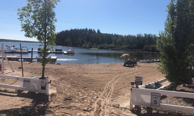 Whether it is the breathtaking sunrise or sunset, treat yourself to the relaxing lake life in this BRAND NEW 2 bedroom deluxe lakefront suite. Start your day with a coffee on the deck overlooking the serene lake water, plan a beach day only steps from a private beach and play area, fish off the dock, enjoy a game at the 18-hole golf course next door, relax and read a book in our adirondack chairs, or take a dip to cool off! Next door to Whispering Pines Golf Course Restaurant, where you can enjoy a pub style meal while sitting on a deck overlooking the lake. All this can be enjoyed within a short 90-minute getaway from Edmonton or Calgary.