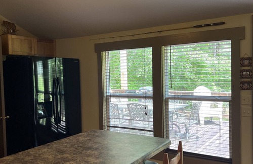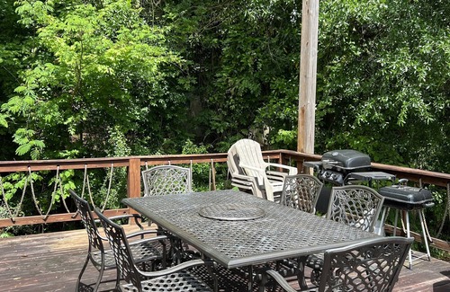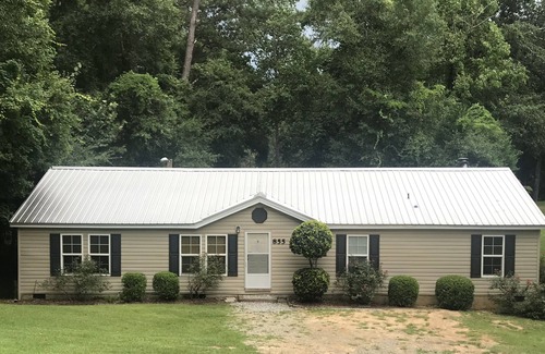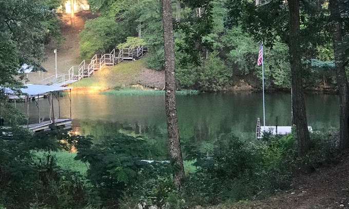 Lakeside Lodge is a charming 1600 square foot waterfront home located in a side cove on the water with beautiful views. Deepwater private boat dock is perfect for fishing or docking your boat, and large deck provides a peaceful paradise for enjoying dinner with a waterfront view. Less than 1 mile from Bakers Landing and Thomas Mill Creek boat ramp. Fifteen minutes from the historic City of Eufaula that has lovely historic district, antique shops and wide variety of restaurants. House is 3BR, 2BA that sleeps 8 with king size bed in master bedroom w/ private bath, queen size bed in second and queen in third bedroom, bunks in other room. Fully equipped kitchen, microwave, stove, refrigerator, both gas and propane grill (do not guarantee propane will be stocked from renter to renter, but you can refill at Thomas Landing-1 mile up the road). Satellite (DirectTV) TV, WIFI, real wood burning fireplace & fish cleaning station. Back porch with seating and umbrella table to enjoy waterfront view. Power outlet near boat ramp and extension cord provided at house. Typically 3/night minimum. One-time cleaning fee. Damage deposit of $250, deposit and will be returned within a week after check-out provided no damage has occurred. Memorial Day & 4th of July require 5/day minimum. ABSOLUTELY NO PETS ALLOWED, NO DRIVING ON THE GRASS. YOU WILL LOSE YOUR DEPOSIT IF YOU BRING PETS OR DRIVE ON THE GRASS and no smoking on property. Property is located at 855 Mill Creek Road in Abbeville, Alabama. Check in is 4:00 p.m. Central Time unless an earlier time is coordinated with the owner & Check out is 10:00 a.m. CT. Check out is Description *