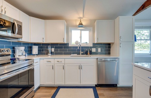 KITCHEN: Stainless steel appliances, stove/oven, microwave, dishwasher, refrigerator, kettle, drip coffee maker, toaster, dishware/flatware