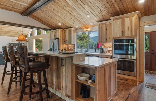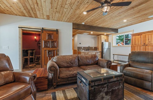 Step into a world of luxury with two rock fireplaces, HD TVs, and all-new fixtures, appliances, and finishes. The 4 bedroom (plus 1 Office room with murphy bed) home comfortably sleeps up to 12+ guests, with two king beds, three queen beds, three twin beds, and one XL twin. Every bathroom is designed for comfort with custom-tiled showers, private toilet rooms, hairdryers, and complimentary shampoo, conditioner and lotion. Enjoy the pure mountain water from a Whole House Triple Filtration System that ensures clean, mineral-enriched water throughout the house. Elevate your retreat experience with upscale conveniences including a Sonos Music Sound System, Wi-Fi and Internet access, HVAC, Alarm, and a Generator that allows for power to remain in the event of power outages. Ceiling Fan with remote control in living room, game room, den, and each bedroom for added temperature comfort. Beach towels are provided for additional convenience.