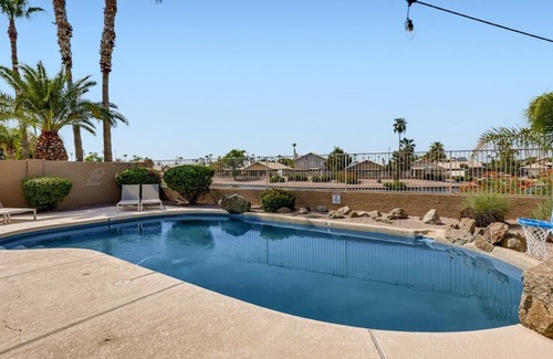 🌵🌴Lakefront Mesa family home+ private HEATED pool (no extra fee!) has 3 Bedrooms , 2 Bathrooms, and max occupancy of 6 people. The minimum rental for this property is 1 nights, but this can change depending on the season you plan on staying. Previous guests have given good rated it, and VRBO labeled it a top-rated House because of the excellent services rendered by the owner or manager of this House, and has consistently provided great experiences for their guests. Most families or guests that use it recommend it to their friends and some of them are repeat guests. House has a friendly neighborhood, and the Desert Sands Golf Country has interesting places to visit. If you want to learn more about the House in Desert Sands Golf Country, such as places to visit and things to do nearby, you can check below to learn more.