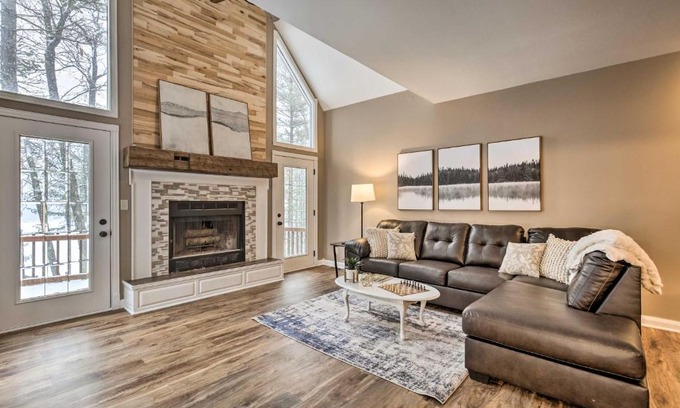 - All-seasons lakefront cabin with dock, wood fireplace, kitchen, kayaks, & AC
